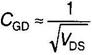 где Ro — параметр, характеризующий сопротивление участка объемного заряда подвижных электронов в канале; τ1 — постоянная времени спада выходного напряжения. На следующей стадии (стадия свободного расширения ОПЗ) при VDS < Vогр начинается заметный рост проходной емкости CGD: