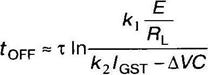 где к2 – коэффициент пропорциональности; IGST – статический ток управления, при котором развивается регенеративный процесс. При выключении тиристора в режиме малых токов накопленный заряд уменьшается только за счет процесса рекомбинации, так как в данном режиме выключение тиристора эквивалентно запиранию насыщенного транзистора с оборванной базой: