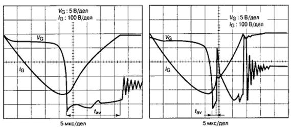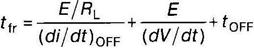 Главными критическими факторами, влияющими на запирающие свойства тиристора, являются динамические воздействия тока и напряжения. Их учет сводится к увеличению времени восстановления полной блокирующей способности тиристора, а также применению при расчете максимальной рабочей частоты ключа параметра tFR вместо схемного времени tc. При воздействии эффекта dV/dt в базы тиристора вносится дополнительный заряд через емкость обратной связи, что уменьшает величину критического заряда: