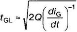 Воздействие di/dt на интервале включения повышает температуру перехода, что увеличивает накопленный заряд. Скорость уменьшения прямого анодного тока при коммутации влияет на величину начального заряда к моменту времени t1 (Q(t1) < Qо). Общее схемное время восстановления в прямом направлении согласно рис. 4.37 можно выразить суммой (при условии tc≥tOFF):