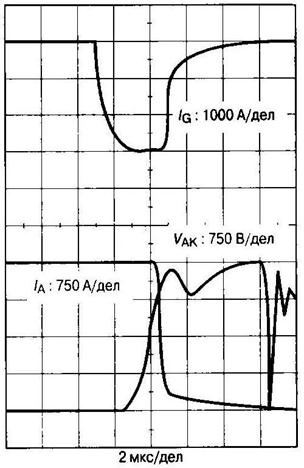 Однако при некоторой критической скорости начинает резко увеличиваться хвостовой ток тиристора из-за роста остаточного заряда в n-базе. По этой причине устанавливают минимальную (~10...20 А/мкс) и максимальную (~80...120 А/мкс) скорость изменения тока запирания.