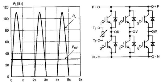 где При этом среднюю мощность потерь в ключевых элементах инвертора можно рассчитать по следующей методике: 1. Динамические потери в управляемом ключе: