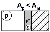 Электрическим переходом называется переходной слой в полупроводнике между двумя областями с различными типами их электропроводности или различными значениями удельной электрической проводимости. Переход между двумя областями полупроводника, одна из которых имеет электронную электропроводность (полупроводник n- типа), а вторая – дырочную электропроводность (полупроводник p -типа) получил название электронно-дырочного перехода или p-n перехода. Переходы, образованные полупроводниками с проводимостью одинакового типа, но с разными значениями удельной электрической проводимости называются электронно-электронными переходами ( Переходы, образованные полупроводниками с разной шириной запрещенной зоны называют гетеропереходами. Если переход образован контактом полупроводника и металла, то такой переход называют переходом металл-полупроводник. Рассмотрим такие контакты Процессы электропроводности в металлургических контактах металлов и полупроводников можно рассматривать с использованием понятия работы выхода электрона. Под работой выхода электрона (А) понимается то минимальное значение энергии, которую должен получить (либо затратить) чтобы преодолеть силы внутренних связей электрона в веществе и выйти из металла или полупроводника. Очевидно, что чем меньше значение работы выхода у материала, тем легче электрону покинуть материал. В технических приложениях используются не собственные, а примесные полупроводники, то есть полупроводники с электронным типом проводимости (n -типа) и полупроводники дырочным типом проводимости (p -типа). Рассмотрим процессы, происходящие в контактах металла и полупроводника при различных соотношениях величин работ выхода электрона у контактируемых веществ. 1. Пусть работа выхода электрона из полупроводника с электронным типом проводимости (n- типа) больше работы выхода электрона из металла (рис. 1.2.1.):