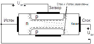 Принцип действия полевого транзистора с управляющим p-n-переходом