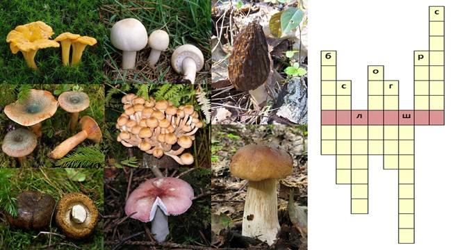 Ответ: ______________________________ Баллов) Разгадайте кроссворд «Парад грибов». С помощью рисунков и начальных букв впишите в кроссворд названия грибов. Правильно определив названия, в выделенных клетках вы сможете прочесть ключевое слово. Запишите полученное слово в ответ без каких-либо знаков препинания.