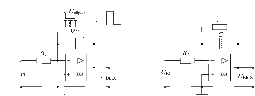 а) б) Рис.12.9. Интеграторы с уменьшенным дрейфом: а) – с периодическим сбросом; б) – с резистором в цепи ООС