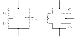 а) б) Рис.4.4.4. LC -контуры: индуктивная трехточка (а), емкостная трехточка (б) На рис. 4.4.5. показаны схемы генераторов с индуктивной (а) и с емкостной (б) трехточкой.