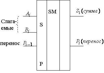Рис. 5.4.6. Обозначение одноразрядного сумматора Полусумматоры – устройства, отличающиеся от одноразрядного сумматора отсутствием входа сигнала переноса Таблица 5.4.8.