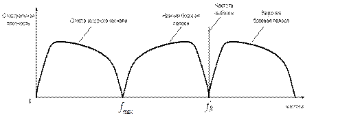 а) б) Рис. 5.7.4. Неправильный (а) и правильный (б) выбор интервала дискретизации Для синусоидального сигнала выборки могут осуществляться по одной на каждый полупериод сигнала. На первый взгляд, это условие не позволит восстановить первоначальный сигнал из выборок. Однако теорема справедливо предполагает, что сигнал, из которого взяты выборки, будет восстанавливаться путем пропускания через фильтр низких частот с крутым срезом и с шириной полосы, равной fМАКС. При этом из колебания будут удалены изгибы, которые сформированы высокочастотными составляющими, лежащими в области спектра, лежащей выше требуемой полосы частот. На рис. 5.7.5 показано, как можно представить теорему Котельникова, представив процесс взятия выборок, как модуляцию. Колебание с частотой выборок умножается на колебания всех частот в спектре входного сигнала. Результирующий спектр располагается по обе стороны частоты f В. Если частотные составляющие этих компонентов попадают в полосу от 0 до fМАКС, то они накладываются на спектральные составляющие исходного сигнала. В этом случае исходный сигнал не может быть восстановлен. Этот эффект носит название искажений вследствие наложения спектров. По этой причине частота выборок fВ должна, по крайней мере, вдвое превосходить частоту fМАКС, чтобы избежать перекрытия. Для примера, на компакт-дисках частота выборок взята равной 44,1 Гц, чтобы вдвое превышать полосу звукового диапазона 20 кГц с небольшим запасом. Проблема наложения спектров становится яснее, если представить себе, например, что частота выборок на компакт-диске была бы всего 22 кГц. Тогда при поступлении на вход АЦП звукового сигнала с частотой, например, 17 кГц, в результате взаимной модуляции с колебанием частоты 22 кГц возникает паразитный сигнал с частотой 5 кГц. Этот сигнал наложения является паразитным сигналом, попавшим в полосу частот звукового диапазона. Его никак нельзя будет исключить в дальнейшем последующей фильтрацией. По этой причине необходимо еще до взятия выборок подвергать аналоговые сигналы фильтрации, предупреждающей наложение, чтобы гарантировать отсутствие в спектре сигнала компонентов с частотами больше fВ/2. Такой фильтр (рис.18.1) получил название антиалайзинговый фильтр. В общем случае выбор частоты дискретизации будет зависеть от вида сигнала выборки и допустимого уровня погрешностей, возникающих при восстановлении исходного сигнала по его отсчетам. Все это требует принимать во внимание при выборе частоты дискретизации, которая определяет требуемое быстродействие АЦП.