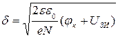 Пусть подложка и исток соединены друг с другом и UCИ = 0, на затвор подано напряжение - UЗИ (рис.23 б). Тогда толщина р-n перехода затвор–канал равна: