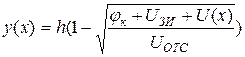 где r – удельное сопротивление; L – длина и W – ширина канала. При подаче на сток напряжения (UCИ>0) в канале возникает ток IС и вдоль канала появляется падение напряжения U(x), величина которого зависит от расстояния x до истока. При этом на р-n-переходе будет действовать уже сумма напряжении UЗИ+U(x), и толщина канала становится переменный (рис.23 в). Подставив в формулу (52) вместо UЗИ суммарное напряжение можно найти высоту канала, зависящую от координаты х: