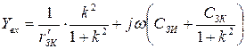 Входная емкость Свх имеет, согласно (72), три составляющие: Свх= СЗК + СЗИ+ СЗС При расчетах положим СЗИ = СЗС, поскольку причина их появления одна и та же. Сопротивление канала r’K определяется по найденному значению крутизны по формуле (69):. r’K=1/ S0 После нахождения всех параметров строится эквивалентная схема для области высоких частот. По этой схеме можно выполнить расчеты любых параметров на любой частоте. Частотная зависимость крутизны дается выражением (71), входная проводимость согласно эквивалентной схеме равна