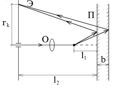 Когерентные световые волны, излучаемые лазером, отражаясь от передней и задней поверхностей пластины, интерферируют при наложении и дают на экране Э интерференционную картину в виде концентрических светлых и темных колец. Здесь rk - радиус темного кольца на экране, соответствующего k - му порядку интерференции, l1 -расстояние от точки фокуса линзы до передней поверхности пластины, l2 - расстояние между пластиной и экраном, b - толщина пластины. Установить пластину П на расстоянии l2 = 1250 мм от экрана Э. Включить лазер (с помощью преподавателя). С помощью юстировочных винтов установить пластину так, чтобы отраженный от нее пучок падал в центр отверстия экрана Э. Установить объектив О на расстояние l1 = 100 мм от пластины П (расстояние l1 измеряется между пластиной и плоскостью оправы объектива, с которой совмещена точка его фокуса). С помощью юстировочных винтов установить объектив так, чтобы луч лазера проходил через его центр, а луч, отраженный от его плоской поверхности, попадал в центр отверстия на экране. После этого на экране должны появиться интерференционные кольца. Их центр должен совпадать с центром отверстия на экране. Date: 2015-05-09; view: 694; Нарушение авторских прав |