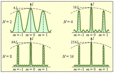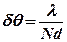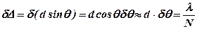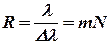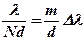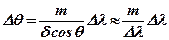 где Δθ – угловое расстояние между двумя главными максимумами в спектре m -го порядка для двух близких спектральных линий с разницей длин волн Δλ. Для простоты здесь предполагается, что углы дифракции малы (cos θ ≈ 1). Приравнивая Δθ и δθ, получаем оценку разрешающей силы решетки: