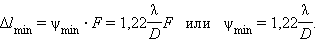Телескоп с диаметром объектива D=1м способен разрешать две звезды, находящиеся на угловом расстоянии ψmin = 6,7·10–7 рад (для λ=550нм).