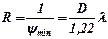 Если лучи света от удаленного источника падают на линзу непосредственно, то роль экрана, на котором дифрагирует свет, выполняет оправа линзы. В этом случае под D нужно понимать диаметр линзы.
