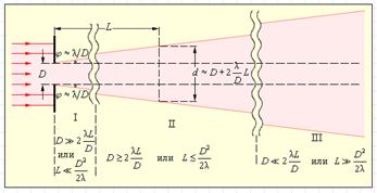 Рис. 3.5 качественно показывает, как по мере удаления от препятствия трансформируется пучок света.