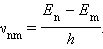 Целое число n = 1, 2, 3,... называется в квантовой физике атома главным квантовым числом. Согласно второму постулату Бора, при переходе электрона с одной стационарной орбиты с энергией En на другую стационарную орбиту с энергией Em < En атом испускает квант света, частота νnm которого равна ΔEnm / h:
