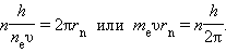 Для серии Бальмера m = 2, n = 3, 4, 5,.... Для ультрафиолетовой серии (серия Лаймана) m = 1, n = 2, 3, 4,.... Постоянная R в этой формуле называется постоянной Ридберга. Ее численное значение R = 3,29·1015 Гц. До Бора механизм возникновения линейчатых спектров и смысл целых чисел, входящих в формулы спектральных линий водорода (и ряда других атомов), оставались непонятными. Постулаты Бора определили направление развития новой науки – квантовой физики атома. Но они не содержали рецепта определения стационарных состояний (орбит) и соответствующих им значений энергии En. Правило квантования, приводящее к правильным, согласующимся с опытом значениям энергий стационарных состояний атома водорода, было угадано Бором. Бор предположил, что момент импульса электрона, вращающегося вокруг ядра, может принимать только дискретные значения, кратные постоянной Планка. Для круговых орбит правило квантования Бора записывается в виде