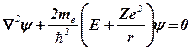те – масса электрона ћ – постоянная Планка Е – полная энергия Так как кулоновское поле ядра атома водорода является сферически симметричным, решение уравнения Шредингера удобно искать в сферической системе координат (r, θ, φ).