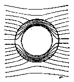 Рис.6.7 а – шар в магнитном поле (μ шара больше μ среды); б - шар в магнитном поле (μ шара меньше μ среды); в - железный цилиндр помещен в первоначально однородное магнитноеполе.