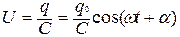 Это дифференциальное уравнение является уравнением свободных незатухающих электромагнитных колебаний в контуре. Решение этого уравнения q = q0cos(ωt +α 0) описывает гармонические колебания заряда на обкладках конденсатора. Амплитуда заряда q0, циклическая частота ω = 2πν, частота колебаний Напряжение на конденсаторе создается зарядом и изменяется так же: