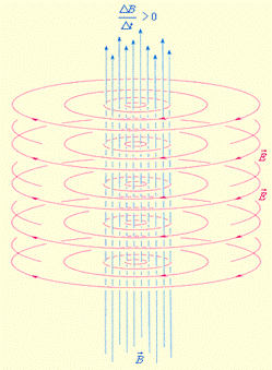 Рис. 9.1 Электрическое поле динамическое и вызывает в любом проводнике движение электронов по замкнутым траекториям. Значит, вихревое электрическое поле выполняет роль сторонней силы в выражении электродвижущей силы для вихревых токов в проводниках