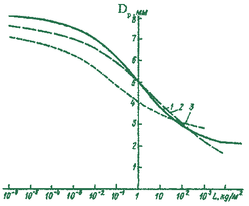 где Dp – диаметр зрачка глаза, мм; L – яркость фона, кд/м2; th – гиперболический тангенс. На рис.4 штриховой линией обозначены зависимости, полученные Ривсом (2) и Пинегиным (3). Кривая 1 построена по формуле (3). Пинегин Н.И. установил зависимость диаметра зрачка не только от яркости фона, но и от его размера: уменьшение углового размера поля при постоянной яркости приводит к увеличению зрачка [7]. При постоянной яркости фона увеличение поля свыше 5 – 10° практически не оказывает влияния на размер зрачка глаза.