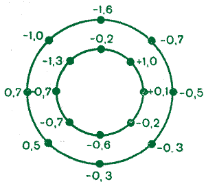 Рис. 10 – Один из примеров распределения рефракции в зрачковой области при физиологическом астигматизме Беспорядочность структуры физиологического астигматизма обуславливает невозможность коррегирования его цилиндрическими или контактными линзами. Последние способны исправить роговичный астигматизм, но хрусталиковый компонент физиологического астигматизма сохраняется в полной мере. Величина физиологического астигматизма не может быть измерена традиционным способом – разностью в двух взаимно-перпендикулярных плоскостях (меридианах). Простейшим вариантом оценки может служить разница самой сильной и самой слабой рефракции. Используют также понятие коэффициента астигматизма К: