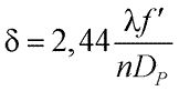 ДИФРАКЦИОННЫЙ ПРЕДЕЛ РАЗРЕШЕНИЯ ГЛАЗА. Вспомним, что никакая, даже идеально исправленная на все аберрации оптическая система не может дать точного изображения предмета. Точка никогда не изображается точкой. Причина – неразрывно связанные с волновой природой света дифракционные явления. Точечный источник света изображается на сетчатке не в виде одной четкой точки, а в виде кружка, окруженного рядом концентрических светлых колец убывающей яркости. Для глаза диаметр центрального светлого кружка для излучения с длиной волны λ зависит от диаметра зрачка Dp и заднего фокусного расстояния f ':