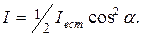где IА – интенсивность поляризованного света, вышедшего из анализатора; IП – интенсивность плоско поляризованного света, вышедшего из поляризатора. Соотношение (1) отражает закон Малюса: интенсивность света, прошедшего последовательно через поляризатор и анализатор, пропорциональна квадрату косинуса угла между плоскостями поляризации поляризатора и анализатора. Интенсивность света, прошедшего через два поляризатора (без учета поглощения), главные плоскости которых образуют угол