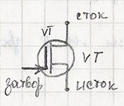 Канальные транзисторы бывают n и p типа. Стрелка вправо на затворе показывает канал n типа, влево p типа. Канал создан из полупроводника n типа заключенного между 2мя p-n переходами. Начало движения заряда - исток, электрод к которому движется заряд- сток. Полупроводниковый слой p типа имеет более высокую концентрацию носителей. Входное напряжение поданное на данный транзистор является обратным для p-n перехода. Полевые транзисторы с p-n переходом имеют запирающее напряжение U. Это значит что при смене полярности входного сигнала транзистор перестает работать. Управляющее вх U является обратным для обоих p-n переходов. Управление током может производится за счет изменения ширины p-n перехода. P-n переход представляет собой группу полупроводников, объединенных носителем заряда, но поскольку концентрация зарядов в p слое больше чем в n, то измерение ширины происходит за счет высокоом. n-слоя, т.е действует эффект модуляции ширины базы. Сечение токопроводящего канала изменяется, значит изменяется и его проводимость, изменяется ток.