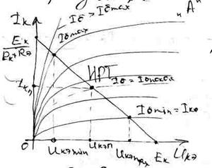 Есмп=Rвхоэ*(Ек-Uкн)/(2* β*(Rк+Rэ))-Iко*Rб+ Uбэо; Iбп=(Есмо- Uбэо+ Iко*Rб)/Rвхоэ. Сопр-е эмиттерн. через температурн. потенциал. rэ =φт/Iэ= φт/((β+1)*Iбп)