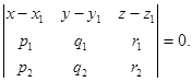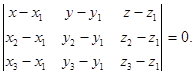 Раскрывая определитель, получаем искомое уравнение: Уравнение плоскости, проходящей через три данные точки. Даны три точки М1(x1,y1,z1), М2(x2,y2,z2), М3(x3,y3,z3), не лежащие на одной прямой. Составим уравнение плоскости, проходящей через эти точки. Рассмотрим векторы