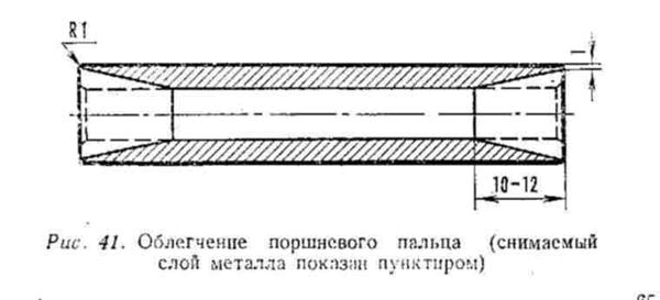 Для уменьшения веса поршневой палец нужно облегчить, сделав выборку металла на его металонагруженных концах (рис. 41)
