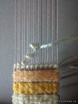 Нить утка - специального клубочка - наматывается вокруг пальцев левой руки в маленький клубочек или можно намотать на бабинку (кусочек картона). Клубочек-уток разматывается с начала нити по ходу работы. И так приступаем!