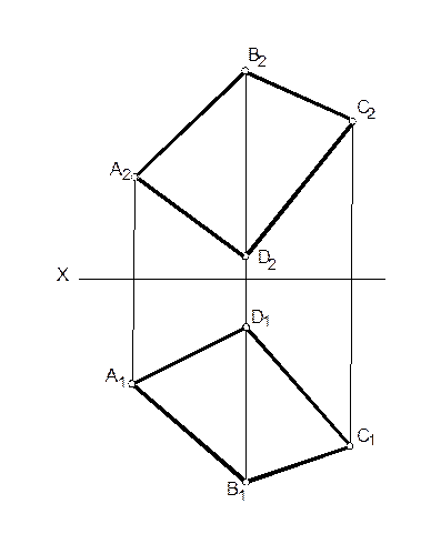 Определить натуральную величину плоскости ABCD и углы ее наклона к горизонтальной (Ðα) и фронтальной (Ðβ) плоскостям проекций