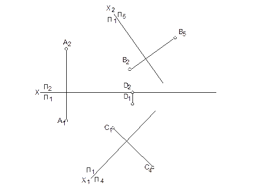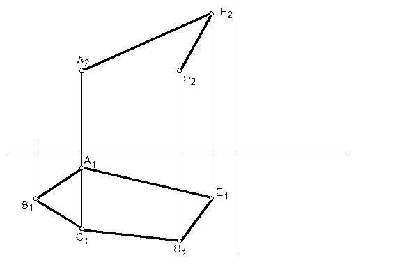 14. Построить недостающие проекции плоского пятиугольника. В плоскости пятиугольника провести диагонали и определить их положение относительно плоскостей проекций.