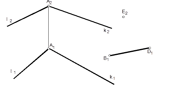 13. Достроить проекции треугольника BDE, лежащего в плоскости ∑ (ℓ×k).