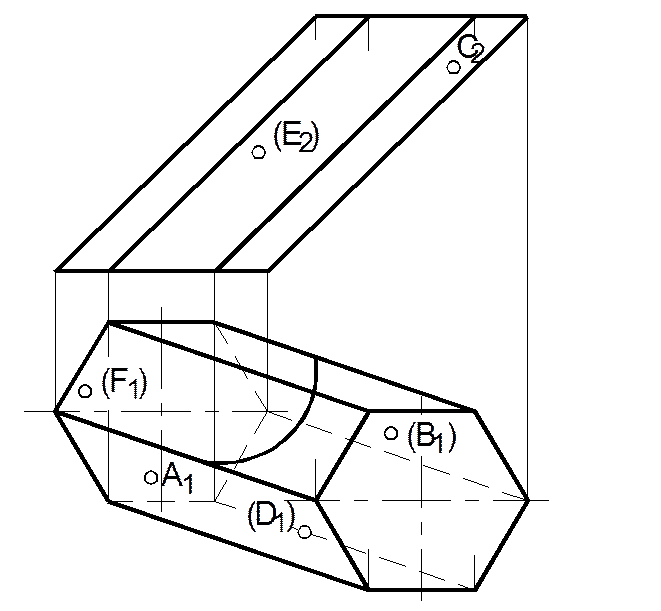 Подраздел 2.1. Гранные поверхности. Принадлежность точки и линии поверхности. Пересечение гранных поверхностей плоскостями частного положения. Определение натуральной величины фигуры сечения.
