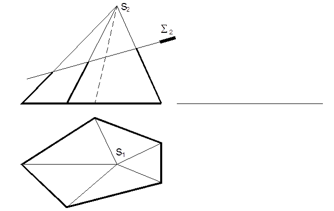2. Построить горизонтальную и профильную проекции пирамиды, усеченной плоскостями.