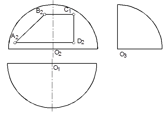 7. Построить диметрические проекции окружности диаметром 100мм в плоскости, перпендикулярной оси Z, и в плоскости, перпендикулярной оси Y. Точки О1 и О2 – центры проекций.