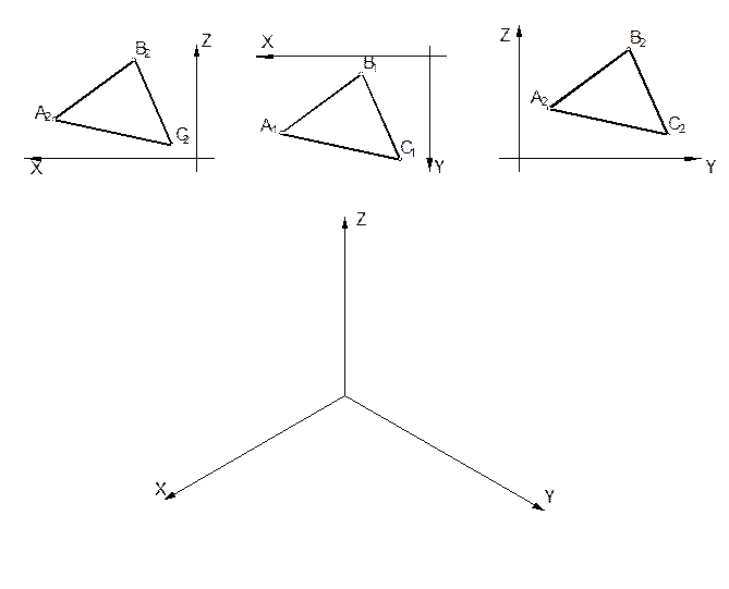 3. Построить изометрические проекции треугольников, расположенных в различных плоскостях проекции.