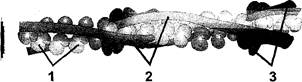 Переходная зона находится в области пересечения жгутика с плазмалеммой. В центре переходной зоны лежит аксиальная гранула, от которой отходит две одиночные микротрубочки, которые идут вдоль оси жгутика до самого конца. На периферии переходной зоны лежит базальный диск, в котором утрачивается одна из трех микротрубочек каждого триплета, и триплеты превращаются в дублеты. Главный стержень представлен цилиндром, стенки которого образованы девятью дублетами микротрубочек, связанных динеиновыми мостиками. Вдоль оси главного стержня тянутся две одиночные микротрубочки. Полость цилиндра заполнена собственным матриксом. По мере приближения к кончику дублеты постепенно утрачивают одну из двух микротрубочек, а затем исчезают полностью. Заканчивается жгутик двумя центральными микротрубочками, покрытыми мембраной. У ряда организмов (некоторые водоросли) обнаружены незначительные отклонения от типичной организации жгутиков: центральные трубочки или отсутствуют, или имеется лишь одна. В специализированных клетках (например, в сперматозоидах человека) в состав дублета входит одна полная микротрубочка (из 13 микрофиламентов) и одна неполная (из 11 микрофиламентов). У некоторых групп эукариот жгутики и реснички отсутствуют (покрытосеменные растения, нематоды, членистоногие, часть одноклеточных животных, водорослей и голосеменных растений). (рис. 41)