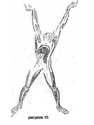 Начните с простых жестов: поднимите спокойно руку, представляя себе, что при этом проходит много времени. Сделайте тот лее жест, сопровождая его представлением о кратчайшем промежутке времени. Делайте подобные простые упражнения до тех пор, пока не почувствуете, что ваше воображение приобрело для вас силу убедительности. Сделайте спокойно широкий жест раскрытия (см. рис. 15).