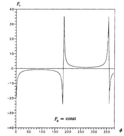 Рис. 48. График не скомпенсированной силы инерции, действующей на центр масс четырехмерного гироскопа.