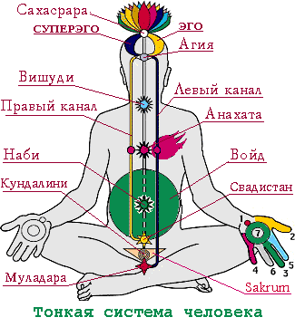 Фото XIV. Система энергетических центров и каналов человека, с которыми работают сахаджа йоги.