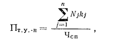 Производительность труда (выработка) — показатель плодотворности, эффективности трудовой деятельности людей, измеряемый количеством продукции или работы, производимой работающим в единицу времени (час, смену, сутки, месяц, квартал, год). Различают производительность индивидуального и общественного труда. Первая измеряется объемом изготовленной в отрасли или на предприятии продукции в расчете на работающего за конкретный период времени; вторая — отношением произведенного национального дохода к общей численности занятых в отраслях материального производства. В зависимости от принятых показателей выработка ложет выражаться в натуральных, условно-натуральных, стоимостных и трудовых показателях. Натуральные показатели производительности труда чрименяются в том случае, если изготавливается один шд изделий. Они конкретны, наглядны, просты. Напри-дер: Пн = N/Чсп, 'де N—объем производства, шт.; Чсп—среднесписочная численность промышленно-производственного персонала или рабочих. В машиностроении натуральные показатели получили ограниченное применение, так как здесь производство отличается многономенклатурностью изделий. Поэтому натуральные показатели производительности труда применяются только в литейных цехах, где выпускается один вид изделия. Однако показатель «Выработка литья в тоннах на работающего (рабочего)» не заинтересовывает в экономии материальных ресурсов, не способствует снижению массы отливок. Этот недостаток натуральных показателей устраняет условно-натуральный показатель производительности труда (Пт.у.-н), определяемый по формуле