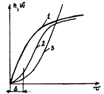 t- время. 1- неразветвляющиеся цепные реакции; 2- реальное течение цепной реакции; 1, 3- разветвляющиеся цепные реакции;
