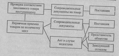 Приемка товаров на предприятиях общественного питания является важной составной частью технологического процесса. Товар принимается по документам: накладным, товарно-транспортным накладным; счету-фактуре. Приемку проводят в два этапа (схема 2).а по скоропортящейся продукции — не позднее 24 ч с момента приемки товаров. Масса тары проверяется одновременно с приемкой товара. При невозможности взвешивания продукции без тары (соленые огурцы, квашеная капуста в бочках, сметана, творог в бидонах) масса нетто определяется как разность между весом брутто и тары. В случае расхождения фактического веса тары результаты проверки оформляются актом на завес тары, который должен быть составлен не позднее 10 дней после ее освобождения. На каждом тарном месте (ящике, фляге, коробке) должен быть маркировочный ярлык с указанием даты, часа изготовления и конечного срока реализации. При обнаружении недостачи составляется односторонний акт о выявленной недостаче, этот товар хранится отдельно, обеспечивается его сохранность и вызывается поставщик по скоропортящимся товарам немедленно после обнаружения недостачи, по остальным — не позднее 24 ч. Поставщик по скоропортящимся товарам обязан явиться в течение 4 ч после вызова, по остальным — не позднее чем на следующий день. После завершения окончательной приемки составляется акт в 3 экземплярах. Одновременно с приемкой товаров по количеству товар принимается также и по качеству. Срок проверки качества для скоропортящихся товаров — 24 ч, для нескоропортящихся — 10 дней. Приемка товаров по качеству производится органолептическим методом (по виду, цвету, запаху, вкусу). При этом проверяют соответствие стандартам, ТУ. К транспортным документам прикладываются сертификаты или удостоверения качества, где указываются дата изготовления, срок реализации, название фирмы; гигиениче